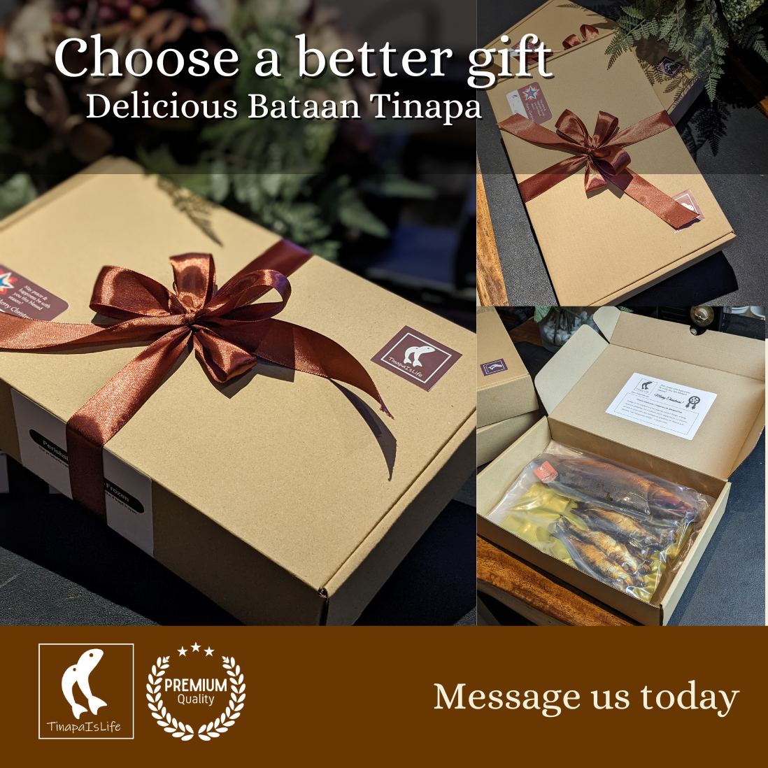 Within each carefully crafted gift set, discover the delightful symphony of tastes with our Tamis-Asim Daing Baby Bangus, Tinapang Galunggong, Tamban, and Kabasi. Each bite is a celebration of unique and delicious flavors that will grace their breakfast table with joy throughout the festive season.