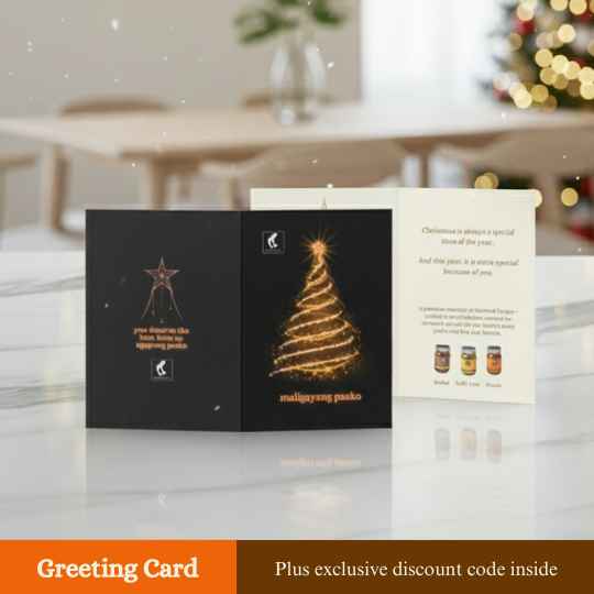 Give the gift of bold, tangy heat this Christmas with our Gourmet Tinapa Kimchi, beautifully packed in a holiday bag with shredded filler, double-bow ribbon, and a Christmas card — all ready to gift.